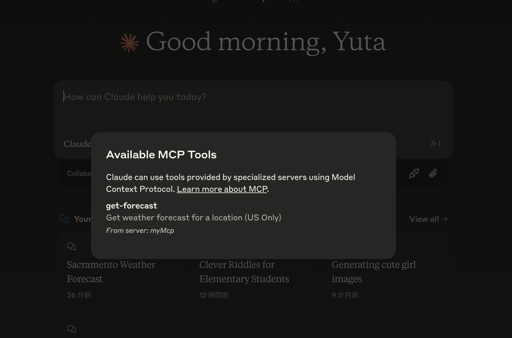 4. Claude DesktopでMCPサーバーが登録されていることを確認する